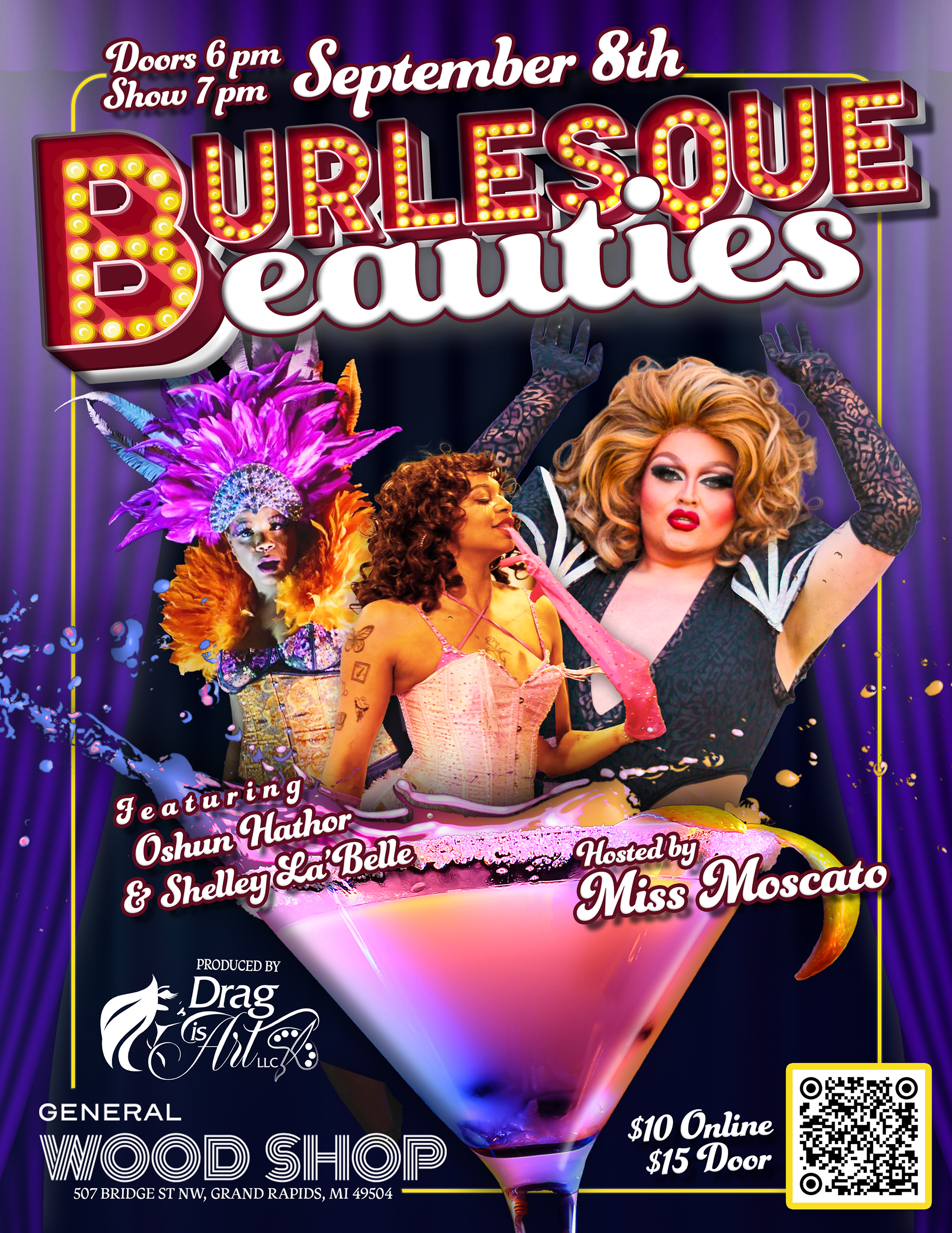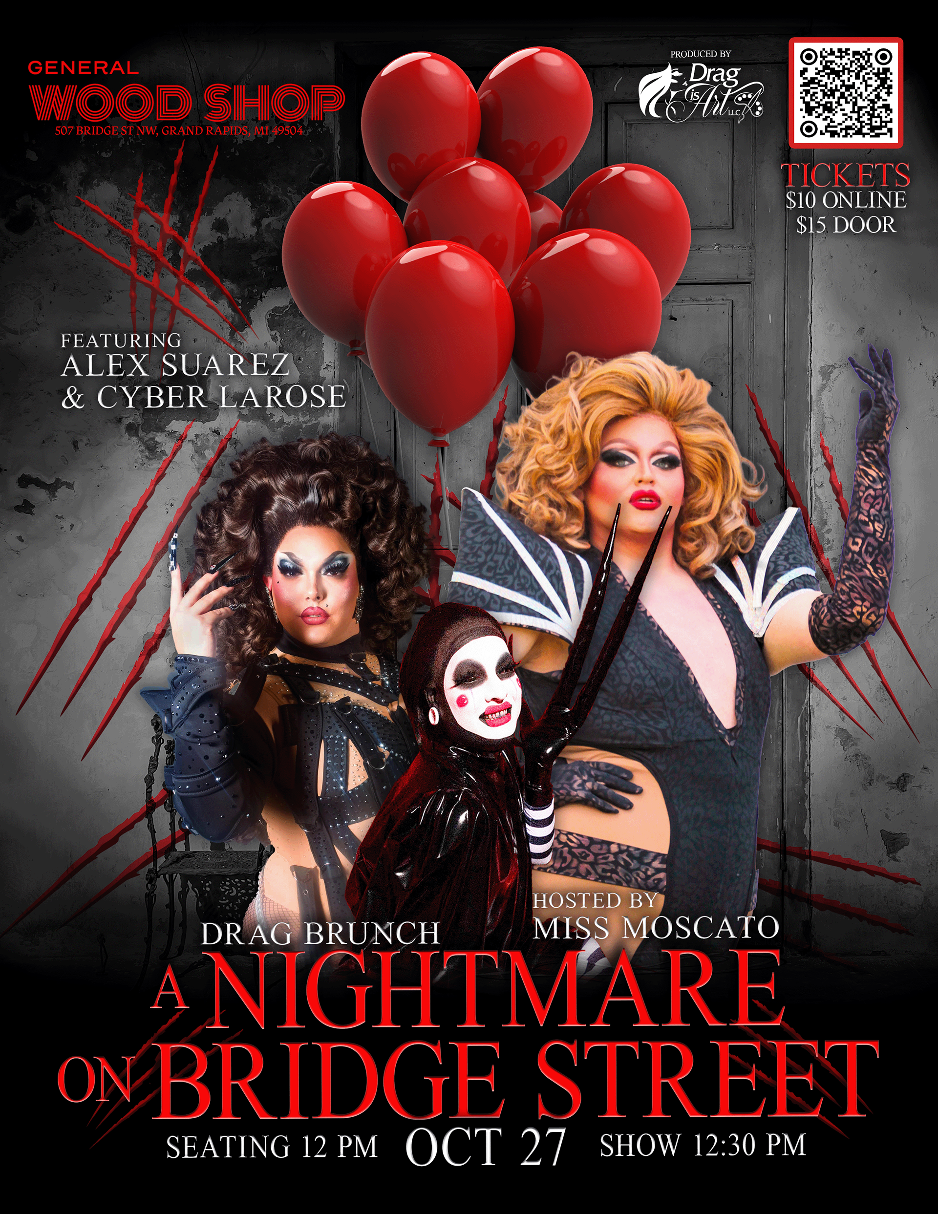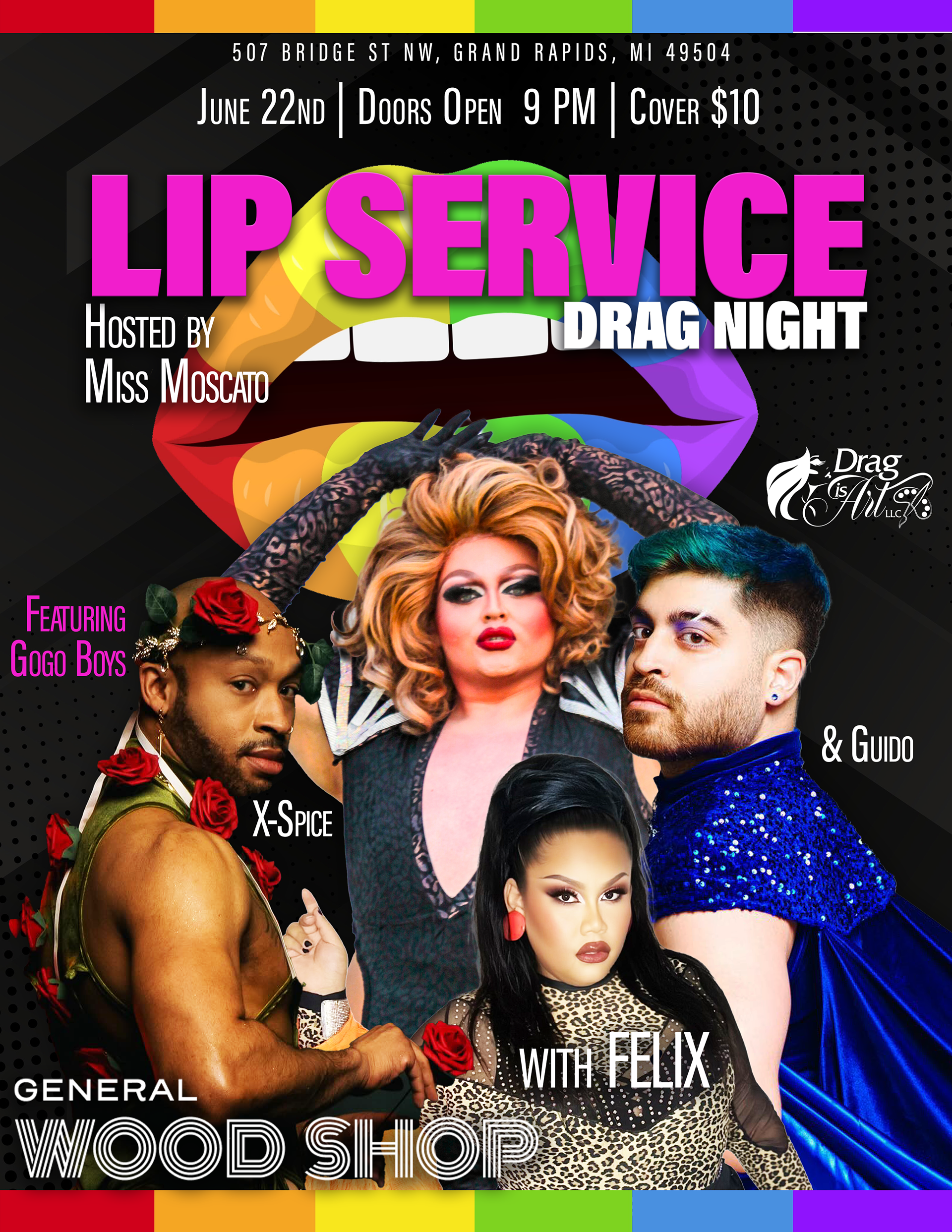Working with Drag is Art, LLC., on behalf of General Wood Shop (rip) and Downtown Grand Rapids, INC., I create the whole promotional package for the event's drag performances.