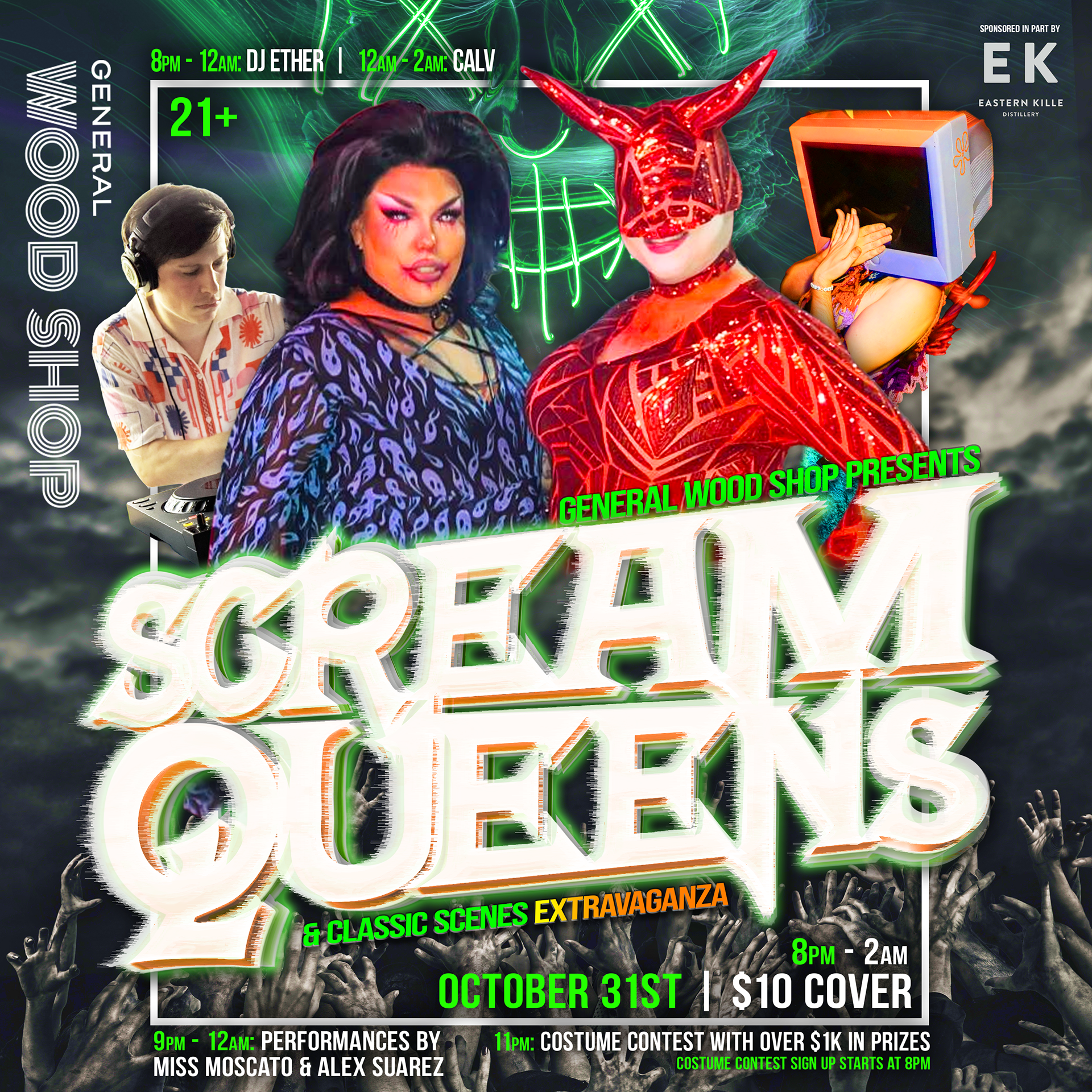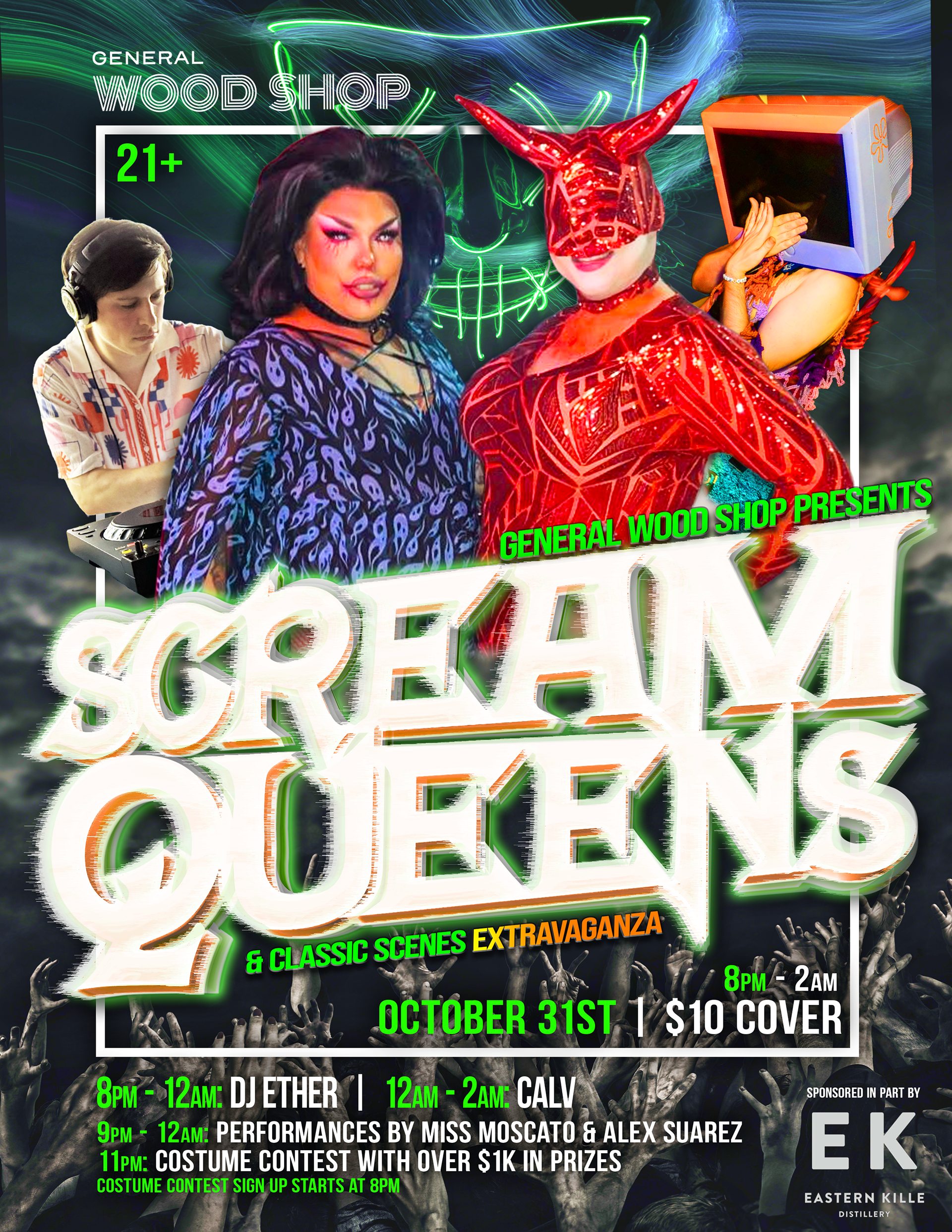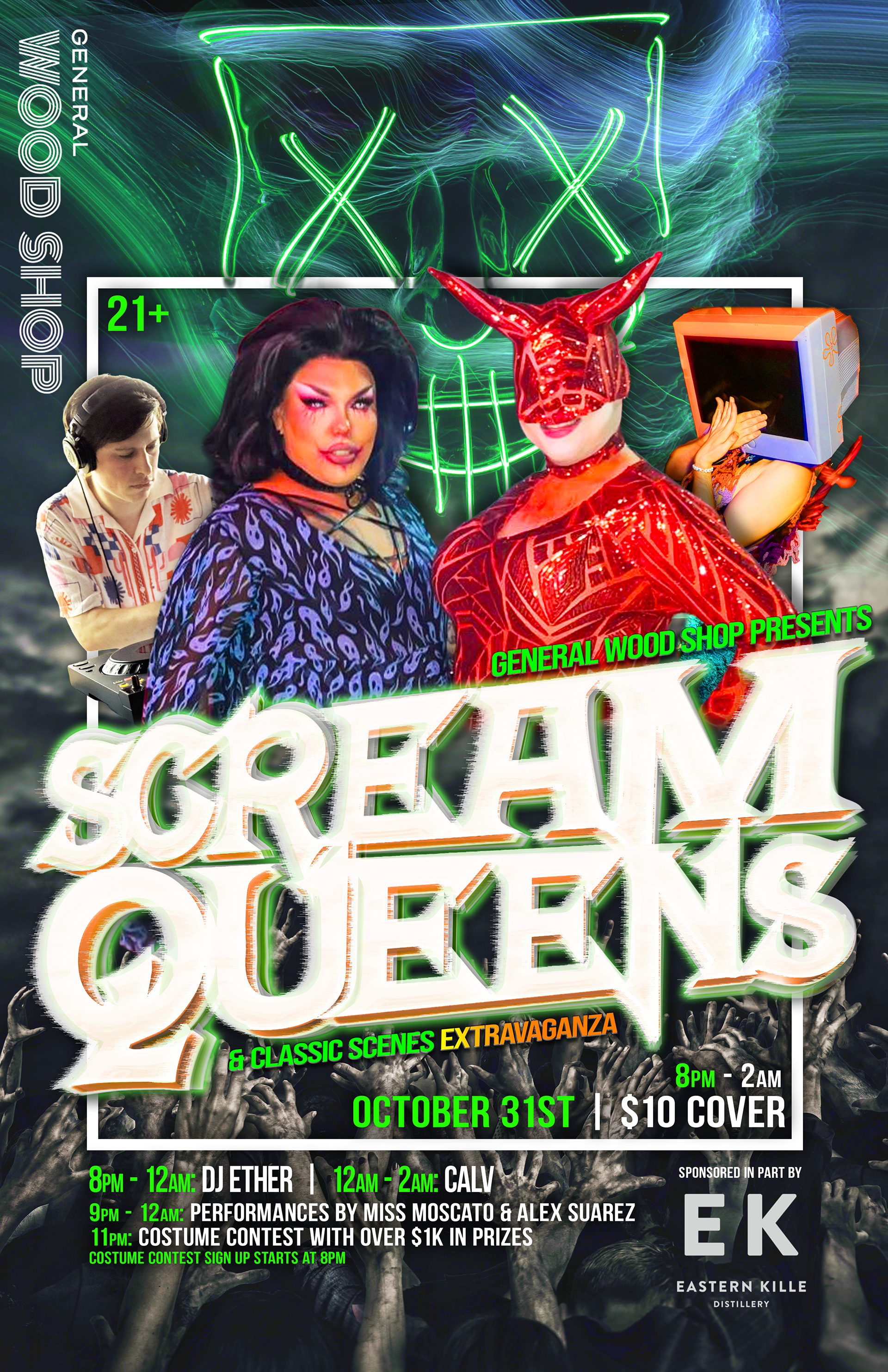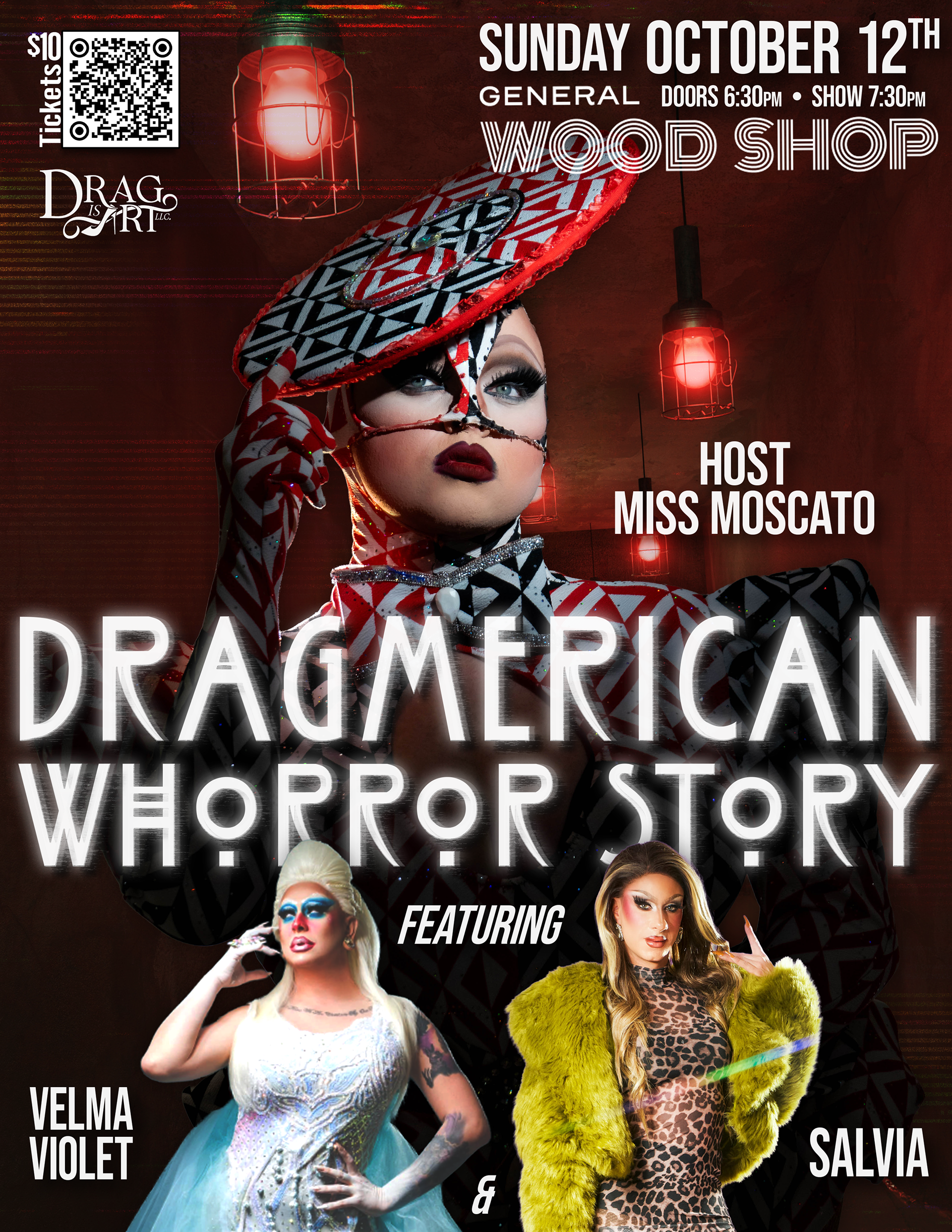 A collab between Drag is Art, LLC. & General Wood Shop (rip) to promote their Halloween party.
