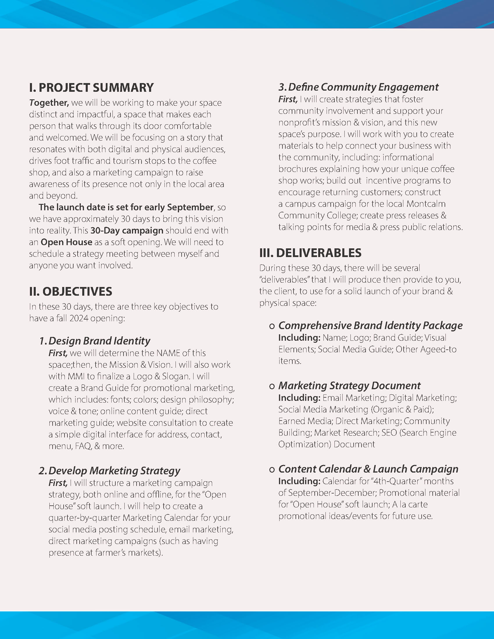 I made this proposal for my services when there was a planned coffee shop grand opening