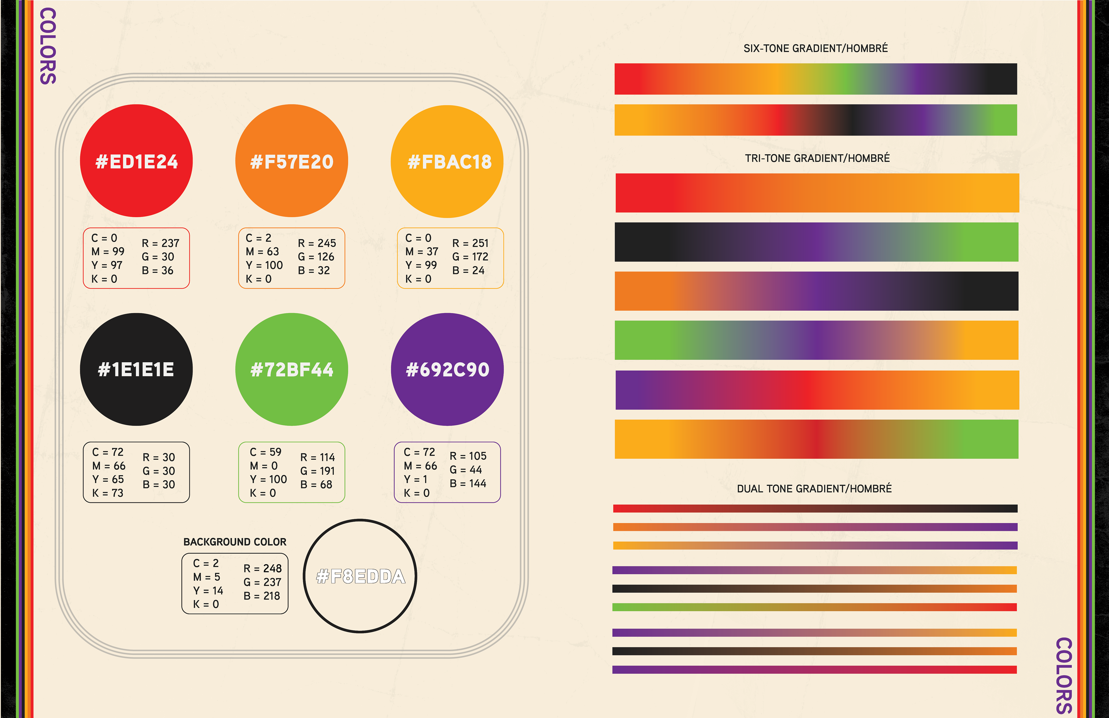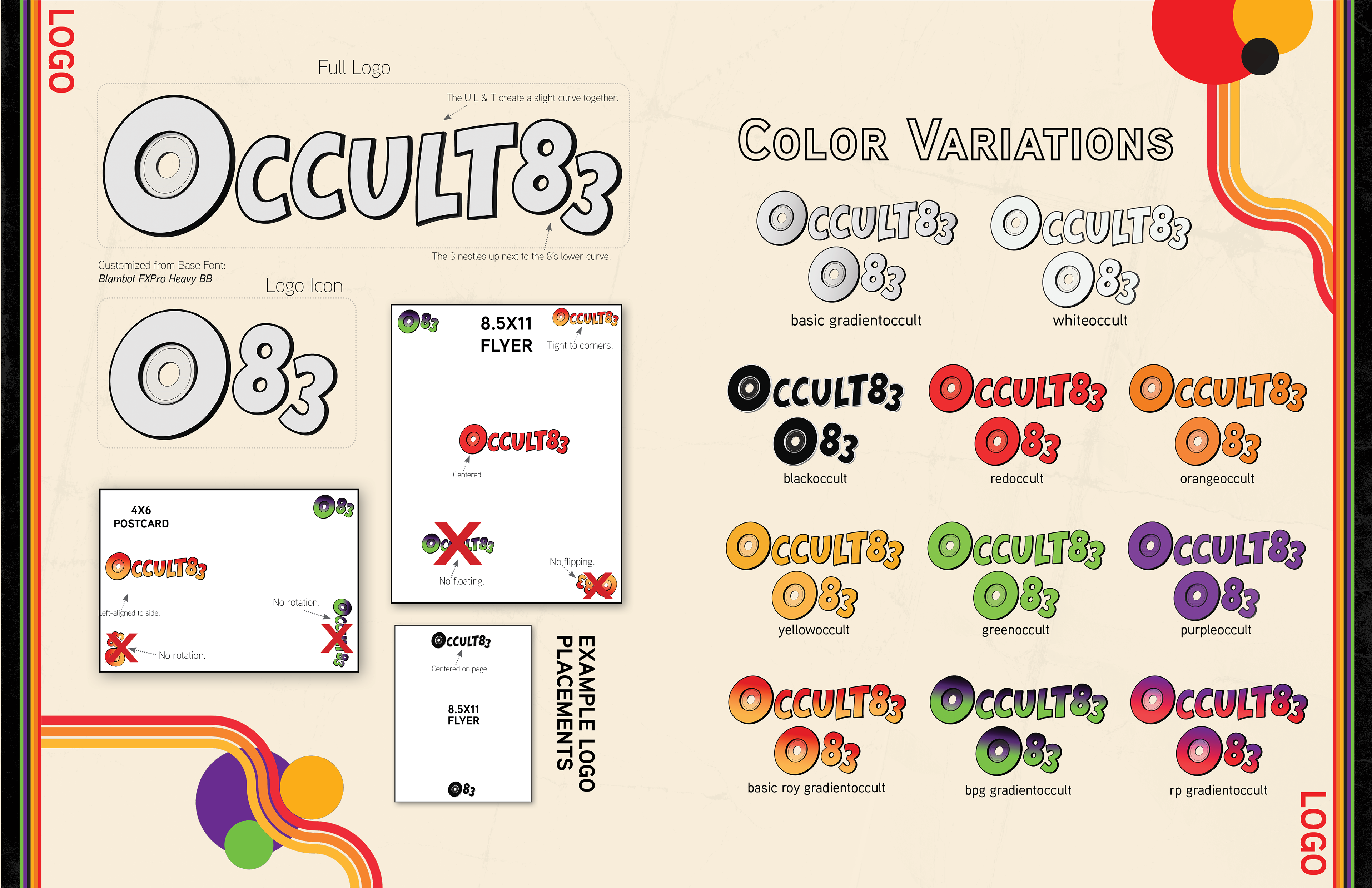 This is the finalized Brand Guide for Occult83. The color scheme, design, gradients, title, patterns, and example images were all created step-by-step with the client.