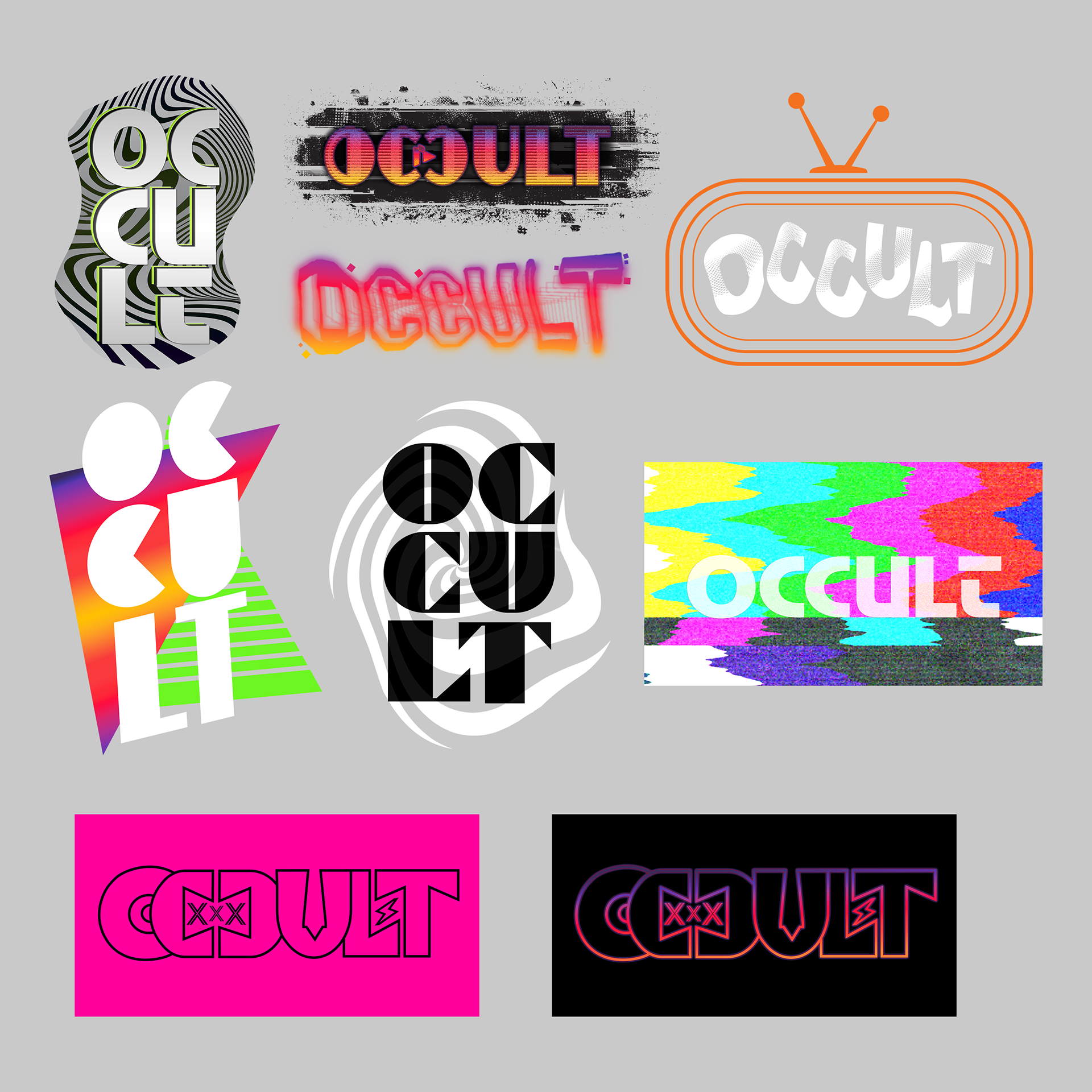 The client asked for a logo that would reflect the Y2K spirit with the full business name. They wanted a font that wasn't perfectly aligned and able to be placed on the front of a building. I designed this with the DVD shape as the O of Occult to harken to the video rental store asthetic, which was my proudest part of this design.